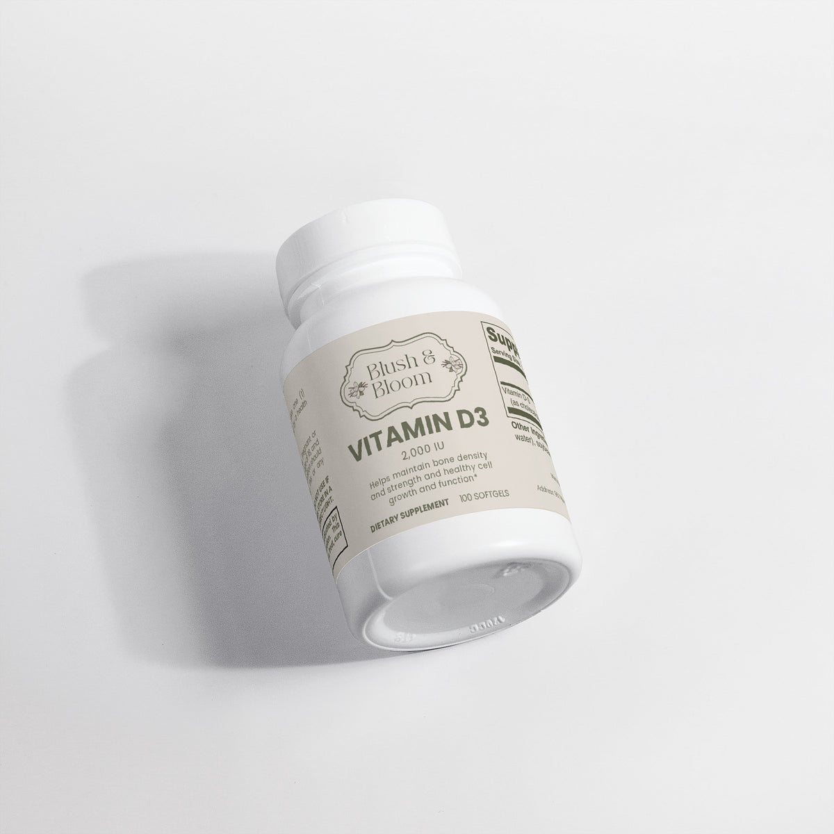 Vitamin D3 (Cholecalciferol) – 2,000 IU per softgel – supports bone, immune, and overall health