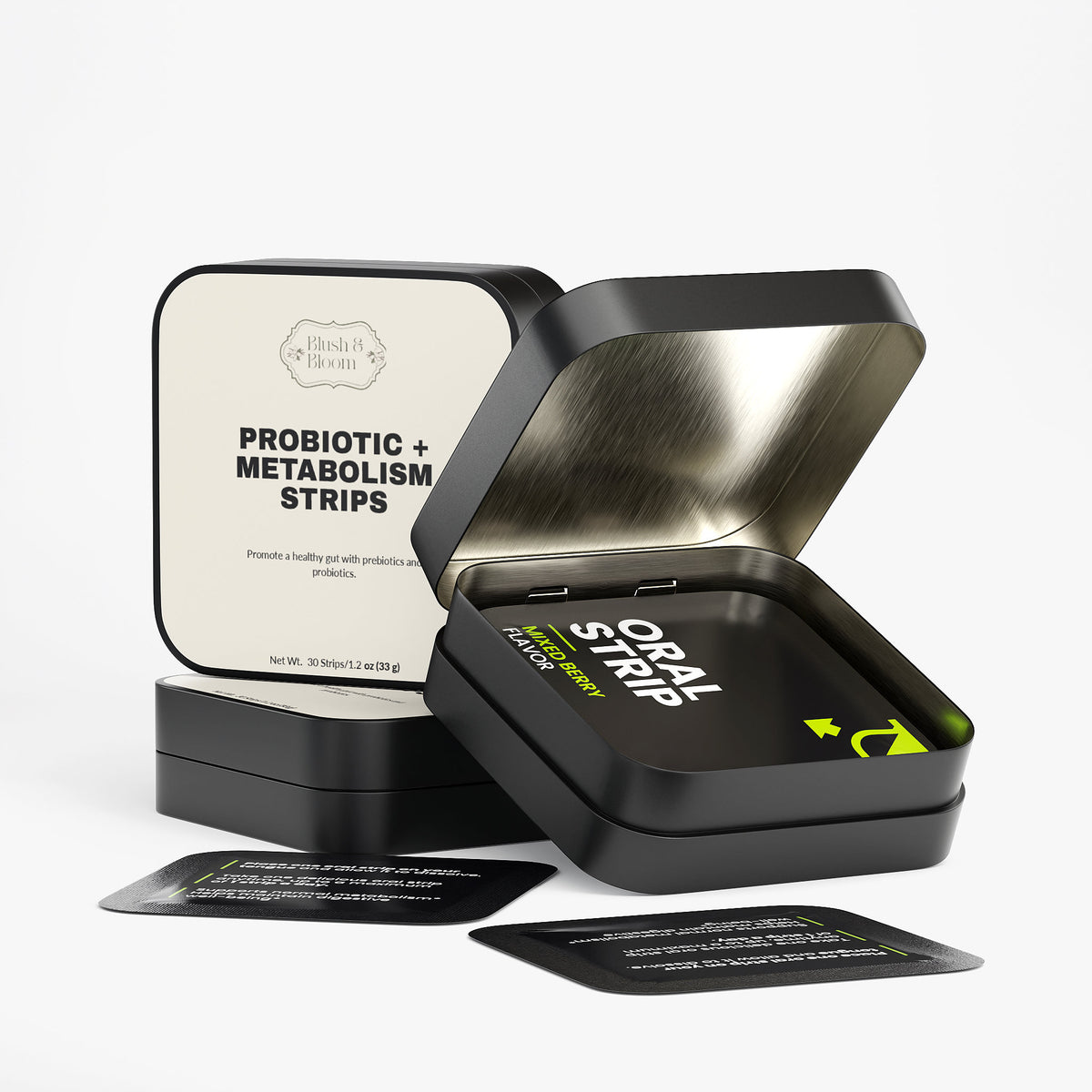 Probiotic + Metabolism Strips are designed to make supporting your digestive wellness effortless. Each strip contains Bifidobacterium lactis, a probiotic that helps support a healthy balance of gut bacteria, combined with polydextrose, a prebiotic fiber that fuels beneficial bacteria. Together, they work in harmony to promote digestive balance as part of your overall health routine.